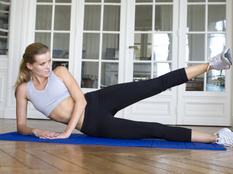 - Megemeljük a felül levő lábat úgy, hogy folyamatosan párhuzamosan tartjuk a combokat és a pipáló lábfejeket. Ha elérünk egy bizonyos magasságot, akkor úgy tudnánk csak tovább emelni, ha a fenekünk elindulna hátrafelé. Ez az a pont, ahol ezt nem hagyjuk, hanem a farizmaink tövénél ráfeszítve gondoskodunk arról, hogy a medence helyzete változatlan maradjon, a csípőlapátok ne mozduljanak el, a combfeszítők változatlanul előre nézzenek. Ha ekkor még egy kicsit ráemelünk, megérezzük a közepes farizom munkáját.