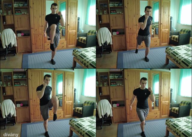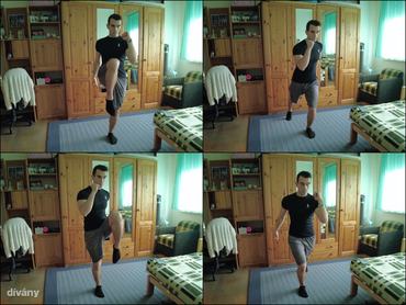- A második lépésben fokozatosan emeljük a pulzust olyan gyakorlatokkal, mint a helyben járás és futás különböző változatai, például helyben futás magas térdemeléssel.