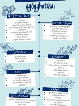A legtöbb fűszer nemcsak ízesíti az ételeinket, hanem gyógynövény is egyben. Infografikán mutatjuk, milyen egészségügyi előnyei vannak a leggyakrabban használt fűszernövényeinknek.