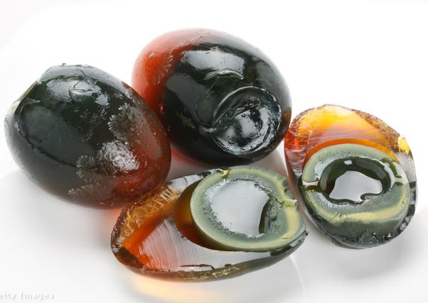 Márpedig Kínában az ezeréves-, száznapos vagy bőrtojásnak nevezett ételkülönlegesség nem más, mint egy hozzávetőlegesen három hónapra, azaz közel száz napra oltott mészből, faszénből, valamint sóból és vízből álló elegyben pihentetett nyers kacsa-, vagy tyúktojás. Ezzel a kísérlettel önmagában nem is lenne semmi baj, még az eredményül végül kapott borostyánosszínű zselémasszává lényegült tojásfehérjével és a zöld túróvá metamorfizált sárgájával is megbarátkoznánk, csak megkótolni ne nagyon kelljen. Mindez Kínában viszont egy különleges fogás: a szójaszósszal, gyömbérrel, vagy éppen ecettel fogyasztott előétel ínyencség.
