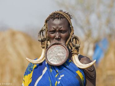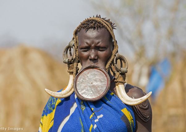 Az etiópiai Mursi törzsnél a fiatal nők alsó ajkukat hatalmas agyag- és fatányérokkal tágítják ki. A folyamat tinédzser korban kezdődik egy kisebb vágással, amit fokozatosan egyre nagyobb tányérok behelyezése követ.