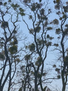 Gyerekként mindig csodáltam a házunktól néhány háztömbnyire fekvő temető hatalmas ősfáin azokat a szép nagy, télen is zöld gömböket. Sokáig azt gondoltam, madárfészkekkel vannak tele az ágak, és csak akkor jöttem rá a tévedésemre, mikor egy viszonylag alacsonyabban lévő részen is találtam egyet. Emlékszem, mennyire lenyűgöztek a fényes, fehér kis bogyók a levelek közt, de szerencsémre nem voltam az a bevállalós felfedező gyerek, így nem kóstolgattam. Jól is tettem, mert a fehér fagyöngy (Viscum album) mérgező, így valószínűleg rövidre zártam volna vele természetbúvár-karrieremet.