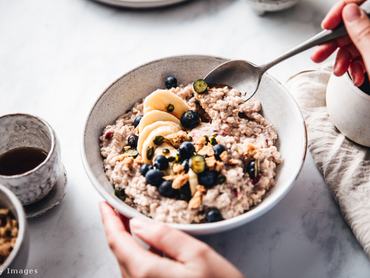 Egy reggelire elkészített finom, forró gabonapehely dióval és szárított gyümölccsel alaposan felmelegít már a nap kezdetén.