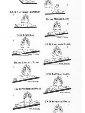 A beteget különböző szögekben döntik meg, vagy párnákkal, törölközőkkel támasztják ki. Gyakran mellkasi ütögetést is alkalmaznak, hogy fellazítsák a lerakódott váladékot. Az egyes testhelyzetekben 3-115 percig kell maradni, hogy a váladék kiürüljön. Kritikus állapotú betegek esetében 4-6 óránként ismételni szokták, de a módszer otthoni körülmények között is alkalmazható volt, orvosi útmutatás mellett.