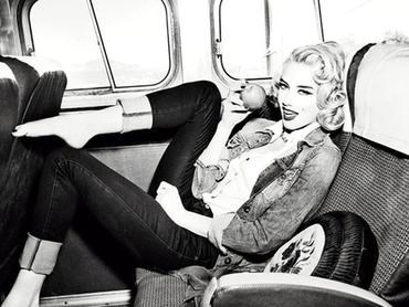 A 25 éves színésznőről Silviu Tulu modell társaságában készített fekete-fehér sorozatot a híres fotós, Ellen Von Unwerth. A képeken Amber Heard testhez simuló farmerben, műszőrmében és vászonkabátban látható, a frizurája és a sminkje pedig Marilyn Monroe-t idézi.
