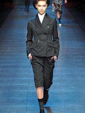 Domenico Dolce és Stefano Gabbana idén őszre végletekben gondolkoztak: nagyon maszkulin és nagyon nőies szettek váltakoztak a kifutón. A férfias vonal a 70-es évek ska-rajongó rudeboy-stílusára hajazott: a modelleken kalap, kétsoros zakó, nyakig begombolt ing, nadrágtartó, férficipő. Persze a szabáson variáltak a tervezők, hogy ne csak egyszerű múltidézést kapjon a közönség: a nadrágok ejtett ülepűek, sok zakó szándékosan túlméretezett, viszont ujjatlan, a kabátokat bársonnyal és szőrmével tették még gengszteresebbé.