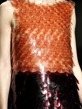 Bár a Prada bemutatóit nagyon sokan tekintik iránymutatónak, azért náluk is elő-előfordul néhány eszement dolog. Most például olyan pikkelylemezekből összerakott ruhát is kreáltak, mintha csak egy ponty vagy sellő lépett volna a kifutóra.
