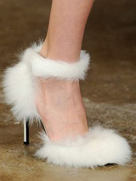 Idén ősszel óriási szőrme-reneszánszra számíthatunk, ami néhány tervezőt, például Joseph Altuzzarrát annyira lázba hozott, hogy a nyitott szandálokat sem átallotta szőrmével díszíteni. Sajnos így viszont olyan a hatása, mintha egy döglött állatba ragadt volna a cipőnk.