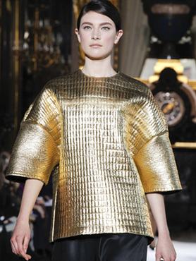 Stella McCartney-t nem lehet azzal vádolni, hogy nem gondol a télre: néhány általa bemutatott kabát például pontosan úgy nézett ki, mintha egy olyan anyagot fújtak volna aranyszínűre, amit a kályhacsövek körbetekerésére használnak.