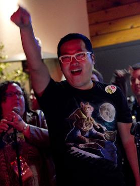 Annyira ciki, hogy már menő! Az ICanHasCheezburger birodalom alapítója, az abszurd macskás képek szakértője, többnyire teljesen elborult szettekben mutatkozik - és mindezeket egy fehér keretes szemüveggel koronázza meg. Nagyon szeretnék egy pólót, amin macskák szintetizátoroznak a telihold fényében!