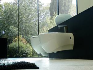 Az olasz tervezők kifinomult ízlését hordozza az Art Ceram cég 2011-es nyári kollekciója. Ezek a darabok már valóban inkább műalkotások, mint ürítő helyek. A falra szerelhető modern vécék különböző színekben kaphatók, játékos formák és színek jellemzik. Egyesítik a presztízst és eleganciát a klasszikus stílus jegyében, vonzereje pedig egyszerűségében és a modern stílusban rejlik. A retró beütést tovább lehet fokozni a csészéhez passzoló mosdókagylóval, és így lesz teles a szett. Igényeseknek akár kígyóbőr bevonatú vécédeszkával. A cég filozófiája szerint a fürdőszoba akkor tökéletes, ha túllép a hétköznapi funkcionalizmuson, és életérzést közvetít. A 60-as évek vonalvezetése, illetve a minimalista kivitelezés miatt ezek a darabok nem foglalnak sok helyet, és már 4-500 euróért (100-140 ezer forint) be is szerelik.