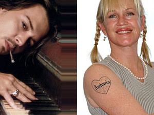 Mindketten a szerelmi tetoválások csapdájába estek, bár eltüntetni csak egyikük szerette volna. Melanie Griffithé a börtöntetkók egyszerűségével/rondaságával hirdeti Antonio Banderas iránt érzett örök szerelmét. Johnny Depp még a '90-es években, Winona Ryderért lángolva íratta magára, hogy "Forever Winona". Ezt a románc végével "wino"-ra lézereztette, merthogy a bort valószínűleg sosem utálja meg.