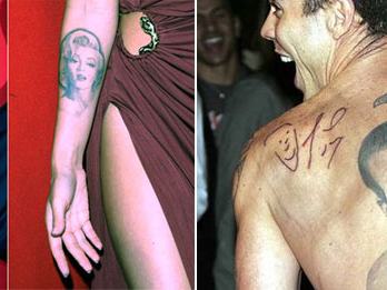 A színésznő fiatalon örök példaképét, Marylin Monroe-t tetováltatta az alkarjára, de úgy hírlik, mostanra inkább szabadulna tőle, és már el is kezdte az eltüntetési procedúrát. Steve-O, a Jackass című sorozat egyik idióta szereplője pedig önimádata jeleként saját képét és aláírását tetováltatta majdnem az egész hátára, bár a többi béna-vicces rajz között szinte fel sem tűnik.