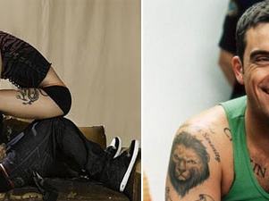 Nem is igazi rocksztár az, akinek nincs tetkója (még ha technikailag popzenét is játszik). Ráadásul sem Pink, sem Robbie Williams nem nyugodt természetéről volt híres karrierje elején, így nincs is semmi meglepő azon, hogy az énekesnő eddig minimum 25 mintát gyűjtött be, Robbie pedig tudomásunk szerint 14-et, de a számot kompenzálandó legalább jó méretesek: van közte kelta minta és oroszlánfej is.