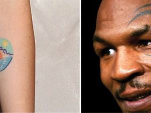 Hollywood kedvenc tehenészlánykájának csak egy híres, kicsi tetoválása van az alkarján, ami viszont olyan, mint egy elmosódott rágómatrica. Sokáig ment a találgatás, míg végül a színésznő elmondta, nincs itt semmi misztikum, ez egy naplemente, amitől neki jó kedve lesz. Tyson leghíresebb tetoválása az arcán látható nonfiguratív törzsi minta, ami aztán a Másnaposok című vígjátékban is önálló életet kezdett, de valószínűleg nincs mélyebb jelentése. Neki egyébként Mao és Che Guevara arcképe is megvan.