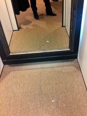 A Mango próbafülkéi az átlagnál tágasabbak, és jóval világosabbak, annyira, högy felüdülés a szemnek. Minden fülkében van fogas és szék, azaz egy feketére lakkozott farönk várja a próbálgatókat. Azonban itt is találtunk porcicákat, de sokkal kisebbeket, mint máshol, hiába, a takarítás nem kedvez nekik.