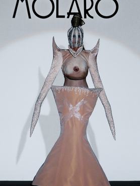 Az esküvői ruha és couture tervezőnek, Gianni Molarónak sikerült elvonnia a figyelmet Gaultier Amy Winehouse modelljeiről. Néhány nappal ezelőtt, Rómában az Alta Roma-n bemutatott 2012-es tavaszi/nyári kollekciójával környezetünk aktuális problémáira és a fogyasztói társadalomra kívánja felhívni a figyelmet, többek közt a képen látható egymellű-nő ruhával.
