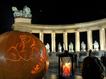 Magunk is meglepődtünk, milyen elementáris erővel bír egy sornyi töklámpa. A látogatók valamiért olyan szorosan körülállták a kiállítást, hogy kis híján megégették az orrukat. A fotósok nagytotálról nem is álmodhattak. Valaki csillagot, vagy standard arcot, netán kalligrafikus jelet vagy egyenesen tájképet faragott ki a tökből, ám a legsűrűbben mégis csak a klasszikus ábrázatú, háromszögszemű, vicsorgó tökfejek támadtak.