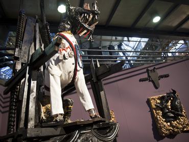 Mivel egy székről van szó, és nem egy házasságról, így szerencsére nem kell hosszan és bonyolultan elemezgetnünk a dolgot. Kényelmes volt, de ennyi. A székek után következett egy textilgyárnyi kárpitminta. A hetvenes éveket idéző virágminta, a nagymacskaminta, a teljesen homogén, steril árnyalatok mellett a rikító-sikító feltűnő neonszínek is mind menők ma, ha kárpitról, tapétáról van szó. Minden divat. De ha már kárpit, akkor egymás mellett fut a bársony, a műszőr, a bőr, a műbőr, itt is minden. A mintás szövetdarabok után a formatervezés nagyágyúi mellett kötöttünk ki. A gömb alakú asztal - közepén egy lyukkal -, a piros pénisz alakú ülőalkalmatosság, a fehér felfújható gumifotel, a hullámpapírból barkácsolt lámpabúrák, a két mutatóból álló óra után elérkeztünk végre a horrorkutyához. A horrorkutya egy doberman, pontosabban több doberman. Papírmasé doberman. Az egyik trónuson ül uniformisban, onnan vicsorog bicskafogaival a dizájnmánokra, a másik papírmasé doberman a földön fekszik, a harmadik egy szék lába, a negyediknek, ötödiknek és a hatodiknak csak feje van, de az rögtön azon a polcon, ahol a prospektusokat találjuk, de a fődoberman nem ám a földön áll, ül, fekszik. Egy nyílvesszőktől sebzett, életnagyságú papírmasé ló hátán figyeli a járókelőket, akik nem győznek szívbajt kapni a lovas-kutyás horror láttán. Közelebb lépve észrevesszük, hogy a vörös festék mellett a szögekkel sem spóroltak, ráadásul a semi-steam punk jelenség tiszta pókháló volt. Az állatok gazdája Szőke Miklós Gábor, a Dante Empire megálmodója. A vidám tájépítészek mellett hamar megtaláltuk a kertibútor-részleget, ahol kipróbáltunk egy hárommillió forintot érő kékeszöld hintaágyat is. Három millió forint! Az rendben van, hogy formatervezett, mobil, és még árnyékolója is van. Az is rendben van, hogy a színe a zöld és a kék között mozog, az is oké, hogy van egy-egy kis hurkapárna a két végén, az is oké, hogy mindez levélalakú, de hárommillióért azért többet is tudhatna.