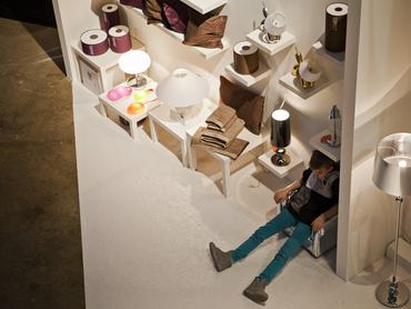 Félve megkérdeztem a hintaágyőrt, kipróbálhatom-e, mondta, hogy csak bátran pattanjak fel rá. Stabil, masszív szerkezet, a rugóival sincs gond. Mondjuk ennyiért akár lehetne benne egy örökmozgó ringatófunkció is, de nincs! Nagyon bonyolult behintázni magunkat fekve, ülve még csak-csak, de fekve felejtsük el! A formatervezett hintaágy után felmentünk a lególépcsőn az emeletre, ahol -hogy s hogy nem- félmeztelen szeplős lányok fogadtak minket. Persze csak a falon. Tombor Zoltán divatfotós munkáit is kiállították, ami ha távolról is, de azért csak érinti a lakástrend tematikáját. A fotók után megcsodáltuk még az ékszerverseny jelöltjeit, ahol a legszebb darab egy neonzöld plexilapokból álló nyakék volt. A túra végén még játszottunk egy kicsit a Bokor Gyöngyi által tervezett CD lemezekkel, amikből búgócsigákat gyártott, tehát búgó CD-ket. Végül azért láttunk egy-egy gyereket is a térben, aminek igazán örültünk. Az biztos, hogy az életben nem lesz annyi pénzünk, hogy hárommilliót áldozzunk egy darab hintaágyra, de láttunk nagyon hasznos és szép, sőt igazán meghökkentő dolgokat is. Két kiló reklámanyaggal és egy 450 forintos szalámis szendviccsel hagytuk el a helyszínt.