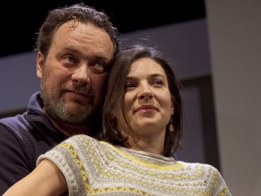Schneider Zoltán (Johan) és Szávai Viktória (Marianne) játsszák a középosztályba tökéletes természetességgel illeszkedő házaspárt, akiknek nincs egy unalmas és kihasználatlan perce, hiszen az életük egy megelevenedett fogpasztareklám. Talán pont a boldogság miatt nyilatkoznak is kapcsolatukról, mert tényleg elhiszik magukról, hogy boldogok. Melegség veszi őket körül a Khell Zsolt által megálmodott díszletben, ami könnyen átalakítható egyéb egységgé is, igaz, mindig csak ízlésesen, soha el nem nyomva a színészi játékot.