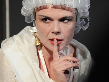 A nőnek is írnia kell, bár tudja, nem lesz soha olyan jó, mint a férfi, akit lenéz és imád. Ki kell írnia magából a fájdalmait, ezért ír saját combjára, megőrült. És combjára ír, hiszen elment, akihez leveleit intézhette, és már az is mindegy, hogy vége a jó hírének, mert itt egyedül ő az, aki veszített, és ő ráadásul mindent. Az elképesztő mennyiségű, mégis dallamos és szép szöveg mellett Györgyi Anna statikus mozgással, mint egy zenedoboz rizsporos parókás balerinája járja az őrület táncát a darab végére, amikor saját maga számára is világossá válik, hogy a férfi örökre elhagyta, soha nem látja többet.