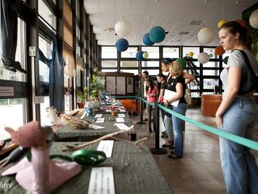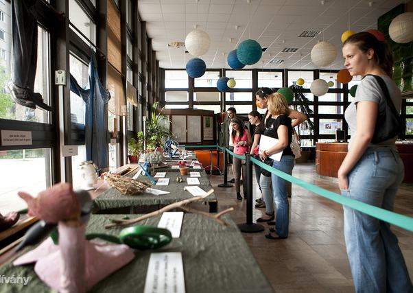 A belépőjegyhez a tárlat mellett időutazás is jár, minimum a kilencvenes évek elején érezhetjük magunkat a hamisítatlan kultúrházi miliőtől, fagyizó anyukáktól, szaladgáló purdéktól és hangosan trécselő infopultosoktól. A kiállításnak semmi nyoma, meg is kérdezzük, merre van, mire a kedves lány a hátunk mögé mutat: a közösségi ház előterében öt zöldterítős asztalra, valamint az ablaksorra helyezték el a tárgyakat. Mindezt zöld szalagkordonnal kerítették el, így nem mondható túlzottan exkluzívnak vagy igényesnek a kialakítás.