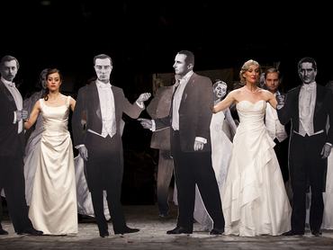 Azt beszélik, Nényei direkt a Radnóti társulatára írta a darabot, és valóban, akad néhány egészen nagyszerű külső hasonlóság, ilyen például Perczel-Petriké, Jávor-Adorjánié vagy Ráday-Rétfalvié. Emellett az író egy jól összeszerkesztett áltörténetet írt köréjük, ami ráadásul úgy kortárs, hogy közben mind szövegben, mind cselekményben a múlt kliséit vonultatja fel.