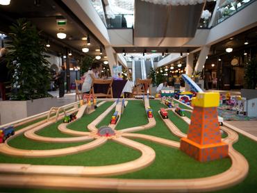 A középső emelet is nagyon várja még, hogy történjen benne valami, bár a hal faránál lévő szinten képzeletbeli Jónásunk főként akkor tud magával mit kezdeni, ha van sok pénze, vagy legalább egy gyereke. Mert azt nem tudni, hogy mennyire marad így (semmennyire), de most van gyerekmozi, Lego játszó Wii-vel, meg rögtön a bejárattal szemben annyi gyerekjáték, hogy egy fél óvodát kiszolgálna - látszik, hogy az önkormányzat a családosokra bazíroz. Már szinte látjuk is, ahogy nekiront a gyereksereg ennek a terepasztalnak: