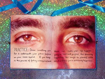 Szombat Éva színpompás fotóin, vagyis „boldogságkompozícióin” láthatunk ovális tükröt rózsás háttér előtt, halványkék rózsák mellett szétszórott, összetört álmok metaforájaként is olvasható, összetört kék delfint, virágfüzérek között ágaskodó fehér porcelánlovakat, vagy éppen arany macskaszobrot. A bevezető ígéretéhez híven a falon nemcsak idézetek és a Cosmopolitan magazin jótanácsai, hanem gyakorlatok is szerepelnek, például: „Minden nap csinálj legalább két olyan dolgot, amit eddig nem mertél megtenni. Például simogass meg egy vérebet, adj puszit egy rendőrnek, vagy nyilatkozz őszintén a főnöködnek. A félelmeid leküzdése az éned kiteljesedését és soha nem várt boldogságot hoz végül mindennapjaidba.”
