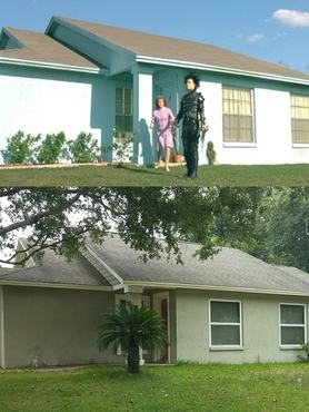 A Designtaxi talált rá Andrew Creameans Imgur-felhasználó sorozatára, aki úgy szeretett volna megemlékezni a jubileumát ünneplő filmről, hogy bemutatja a környék jelenlegi állapotát. A kertvárosi részek nagy részét Floridában, Tampa északi részén vették fel. Tim Burton rendezőt akkor a pasztell színű kockaházak fogták meg. Creamens rajongása persze nem véletlen, hiszen ő is itt él és a forgatás alatt az édesanyja is dolgozott a filmes produkciónak, mint ügyeletes orvos. Az ötletet egy három évvel ezelőtti fotósorozatból merítette, akkor a Stoopidtrooper nevű felhasználó látogatott meg néhány forgatási helyszínt és tette közzé a képeket szintén az Imgur oldalon. Ő lányával választott képeket a filmből, majd próbálták a környéken ugyanazt a pontot és szöget megtalálni a mai verzió elkészítéséhez.