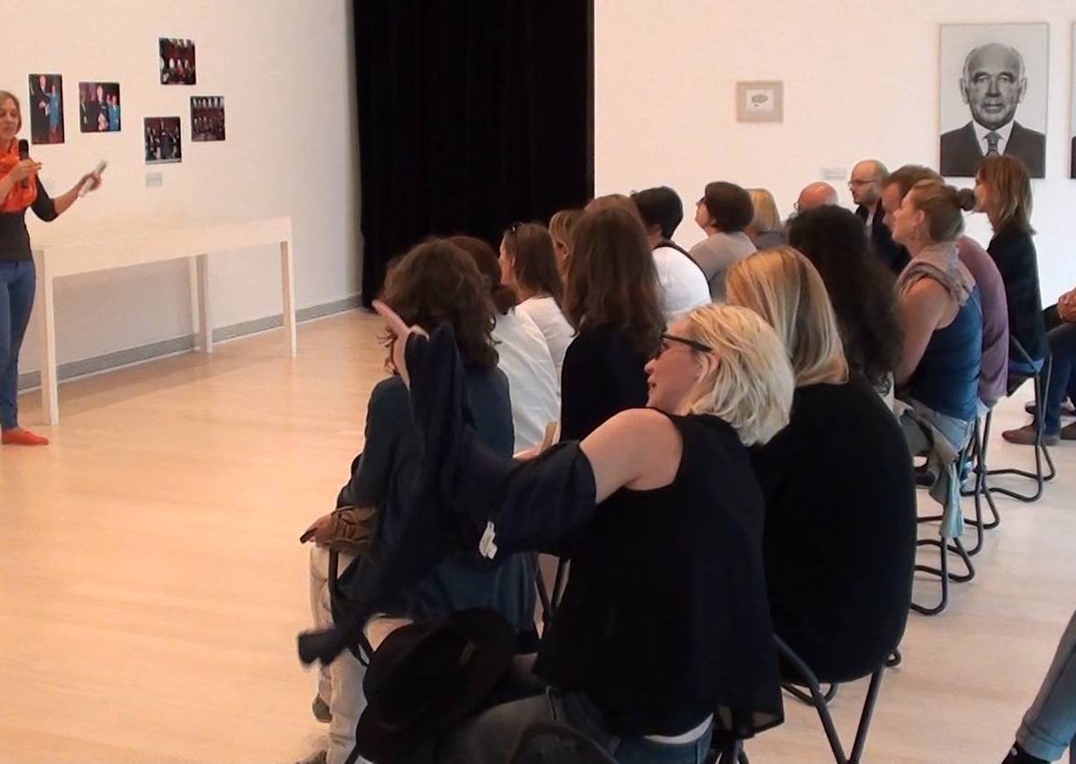 Merész próbálkozás effajta belső utazást hatvan-hetven perc alatt lezavarni, fiatal és lelkes tárlatvezetőnk többször figyelmeztet is minket az idő rövidségére. Tényleg szorít az idő. Bár feltételezem, velem ellentétben a résztvevők nagyjából sejtik, mire vállalkoztak, valahogyan mégis feltűnő a közönség kezdeti passzivitása. Leültetnek minket néhány fotó elé, amelyek a múzeum 25 évét mutatják meg nagy vonalakban, és pár perc múlva már azt a feladatot kapjuk, hogy tekintsük végig némán saját életünk képzeletbeli fotótárlatát. Tizennégy fenék egyszerre kezd el ficeregni a közepesen kényelmetlen hordozható múzeumi széken. Tekintsük. Csoportmunkára, véleményütköztetésre is van némi idő, de a három stációból álló foglalkozás után mégis egy kis hiányérzet marad bennem. Nem lehetne mindezt képek nélkül? Viszont ha már a Ludwigban vagyok, nem lehetne mindezt inkább sokkal több kép segítségével?