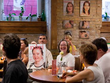 A nyolcadik kerület szívében működik a Nem Adom Fel Kávézó, az elsőfogyatékosok által alapított és működtetett kávéházBudapesten, ahol egyrészt már egy kávéval vagy szendviccsel is támogatni tudunk megváltozott munkaképességű embereket, másrészt maga a kávé vagy szendvics is remek, a hely pedig otthonos és barátságos, mintha csak jó ismerősök nappalijába ülnénk be lazulni egy kicsit. A kávézó ad otthont október 10-ig a Relatív Szépség című kiállításnak: a projekt keretében egy profi stáb ékszermodelleket és címlaplányokat varázsolt értelmi sérült fiatal nőkből.