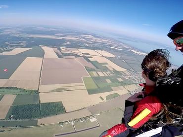 Pontosabban kiugrom egy 4000 méter magasban repkedő helikopterből, egy darabig 200 km/órás sebességgel zuhanok, és aztán még arra is lesz időm, hogy gyönyörködjek a kilátásban. Ja, és nyilván gond nélkül landolok majd. Az ejtőernyős tandemugrásokról készült videókat nézegetve ez a forgatókönyv állt össze a fejemben. Persze a mutatványt nem egyedül szándékoztam véghez vinni, hanem egyrészt egy tandempilótához csatolva, másrészt a férjemmel, akinek eddig leginkább a vízi sportokhoz volt köze, de tudtam jól, hogy mennyire szeretné egy kicsit más szögből is szemügyre venni a világot. Volt is nagy örömködés, amikor bejelentettem, hogy készüljön, mert megyünk Siófokra ugrani.