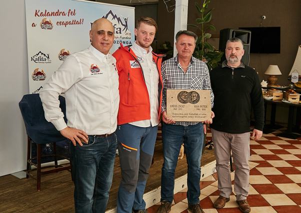 Varga Csaba magával visz egy emléktáblát is, amit a Kancsendzönga alaptáborában fog elhelyezni. Ezt Kiss Péter édesapjának jelenlétében leplezték le a sajtótájékoztatón. A táblán a két hegymászó képmása és neve alatt a következő szöveg olvasható: