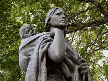 Sacagawea egy lemhi soson törzsbeli indián nő volt, aki rabszolgából tolmáccsá és úti vezetővé lett, ő kísérte el a Lewis és Clark expedíciót az Amerikai Egyesült Államok nyugati partjához. Egyetlen nőként vett részt a 31 férfi expedícióján, a nagyjából 2000 kilométer hosszú útra, amit két év alatt tettek meg az Észak-Dakota és a Csendes-óceán között, újszülött csecsemőjét is magával vitte.