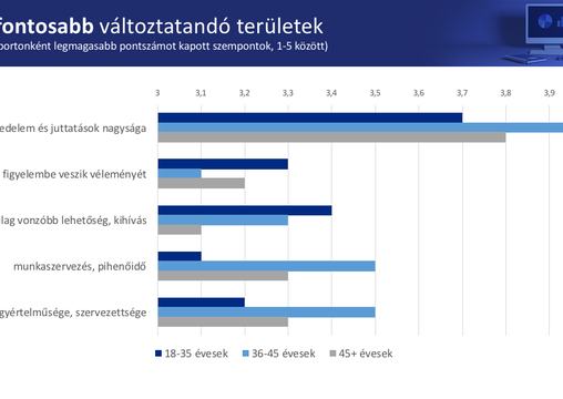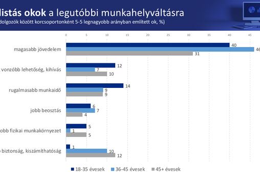 A 35 alatti korosztály munkahelyváltással kapcsolatos indokai között a magasabb jövedelem mellett az idősebbek véleményéhez képest nagyobb arányban szerepeltek a vezető személyét érintő, vagy a munkakörnyezettel és munkahelyi szolgáltatásokkal kapcsolatos megfontolások is. Az idősebb korosztályokhoz képest viszont kevésbé érdekli ezt a csoportot a munkaszervezés, a pihenőidő mértéke és a munkahelyi stressz. Mint ahogy az is, hogy mennyire stabil vállalatnál dolgoznak. Annál fontosabb számukra viszont a véleményük figyelembevétele, hogy szakmailag fejlődhessenek a munkahelyükön, valamint főleg a nem irodai munkát végzők esetében a munkaidejük rugalmassága.