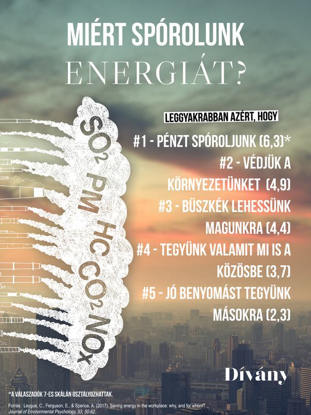 A 7-es skálán átlagosan több mint 6 pontot jegyző költségcsökkentés mellett fontos szempontnak bizonyult tehát a környezet védelme is, melyre úgy tűnik, büszke is lehet az ember. A szempontok között sereghajtó altruizmus és a másokban való jó benyomás keltése ezzel szemben kevésbé tűnnek lényegesnek. Mindezt pedig nem árt tudni mindazoknak, akik a jövő energiahatékonysági kampányait szervezik, és gyakorlati szempontokat kínálnak ahhoz, hogy minél kevesebb energiát pazaroljunk el feleslegesen.