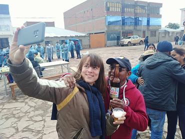Aztán amikor fogytán volt a benzin, és az utunkba eső kúton azt mondták, hogy egy óra múlva érkezik az üzemanyag, a sofőrünk Szabad foglalkozás! instrukcióval kirakott minket egy közeli bányavárosban, San Cristóbalban. Így lettünk hívatlan, de szívesen látott vendégei egy kisebb utcabálnak, ahol a nemzeti ital, a singani (kb. fehérbor) mellett quinoasört, baracklikőrt, szuper édes mentalikőrt, meg még ki tudja, mit kóstoltattak velünk a helyiek.