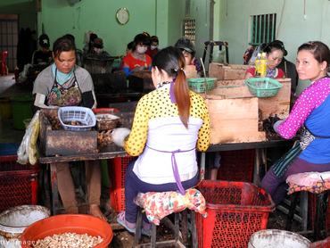Továbbá, a kesudió szüretelése és feldolgozása még mindig legnagyobb részben gépek nélkül, kézi munkával történik, ami azt eredményezi, hogy az előállítás költségeinek mintegy nyolcvan százaléka az ebben a folyamatban részt vevő, keményen dolgozó munkások bérére megy el. Betakarítás után először eltávolítják a magokról a húsos részt, majd lehántolják az azokat körülvevő két kemény héjtól, végül aprítással megszabadulnak a különböző káros, mérgező anyagoktól. Éppen emiatt a leszüretelt terménynek átlagban a fele kárba vész, mialatt a kesudió a fáról az üzletek polcáig tartó hosszú utat megteszi, ezért csak még tágabbra nyílik a kereslet és a kínálat közötti rés.