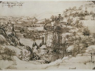 A tudósok Leonardo legkorábbi fennmaradt művét, az egyszerűen Paesaggio (Tájkép) című rajzot vizsgálták, amelyet a művész huszonegy éves korában, 1473-ban készített. A Firenzén áthaladó Arno folyót és a háttérben a Montelupo kastélyt ábrázoló rajz két, kézzel írt feliratot is tartalmaz: egyet magán a rajzon, egy másikat pedig a papír hátoldalán. Előbbit tükörírással, jobbról balra vetette papírra Leonardo, míg utóbbit a nyugati írásmódnak megfelelően, balról jobbra haladva jegyezte le.