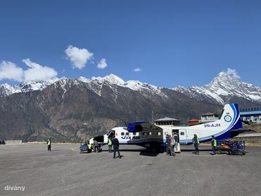 Már kezdem beleélni magam a fordulatokkal teli újratervezés izgalmaiba, amikor odaszólnak, hogy sorakozó, következik a második felvonás. Várjuk ki a végét – mosolygunk össze reménykedve a többi utassal. „Kérjük, csatolják be biztonsági övüket, tíz perc múlva indulunk” – jelzi a cukorkát osztogató légikisasszony. És tíz perc múlva tényleg simán felszállunk! Alattunk a Katmandu-völgy, balunkon a távolban hófödte hegycsúcsok, egy jó fél óra elteltével, egy éles balkanyar után pedig már előttünk a híres-hírhedt Lukla Tendzing-Hillary repülőtér.