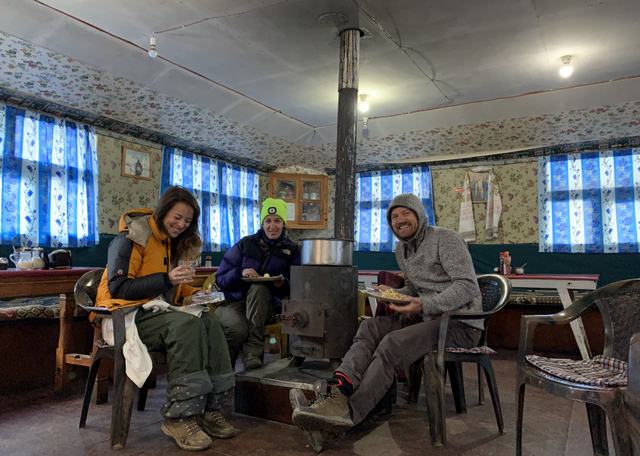 „Addig örülj, amíg jakszarban csúszkálhatsz, a neheze csak ezután jön!” – válaszolja, miután megosztom vele legfrissebb élményeimet. Ő már túlesett mindazon, ami nekem még hátravan... Újabb kellemes meglepetés ér, amikor bemutatkozunk egymásnak: beszélgetőtársam Tibi Csíkszeredáról! És azért nincs semmi akcentus az angoljában, mert az elmúlt húsz évet Amerikában töltötte. A következő percben betoppan a vendégházba Erika, akivel Tengbochében futottam össze. Kell ennél több a mai nap végére? „Húzok zuhanyozni, várjatok meg a sztorijaitokkal!”
