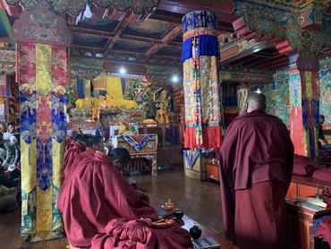 Bár maradni nem sokáig tudok, mivel hamarosan tovább kell indulnunk, ettől a néhány perces spirituális élménytől jó nagy adag pozitív löketet kapok. És ekkor még sejtelmem sincs, mekkora szükségem van erre az előttünk álló etap legyőzéséhez. Hirtelen eszembe jutnak drága Odorics tanár úr kurzusai az egyetemről: Aranykor és éberség, Bevezetés a spirituális irodalomértelmezésbe, Hamvas Béla tanításai... Eszembe jutnak a közös meditálások, Szögyal Rinpocse gondolatai, akitől annyira szeretett idézni a tanár úr, no meg a vizsgakérdések a csakrákról és az ászanákról. Annyira távoli emlékek! Most mégis itt köröznek mind ebben a különös biztonságérzetet árasztó teremben, ahol bíbor lepelbe öltözött szerzetesek imákat mormolnak, jakvajas teát kortyolgatnak és meditálnak. Aztán eszembe jut a zalaszántói sztúpa, amit édesanyám és Newton kutyánk társaságában látogattam meg néhány éve. Emlékszem, akkor is csak 1-2 órát aludtam éjjel, mégis tele voltam energiával. Tudnak valamit ezek a buddhista szentélyek...