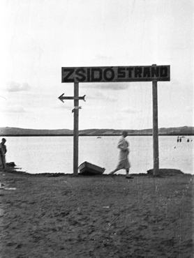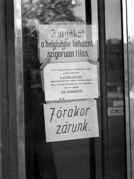 (A mellékelt képen a felirat: A Belügyminisztérium ... rendelete értelmében a sárga csillag megkülönböztető jelzés viselésére kötelezett személyek a cukrászda helyiségét sem mint fogyasztók, sem mint vásárlók nem látogathatják.)