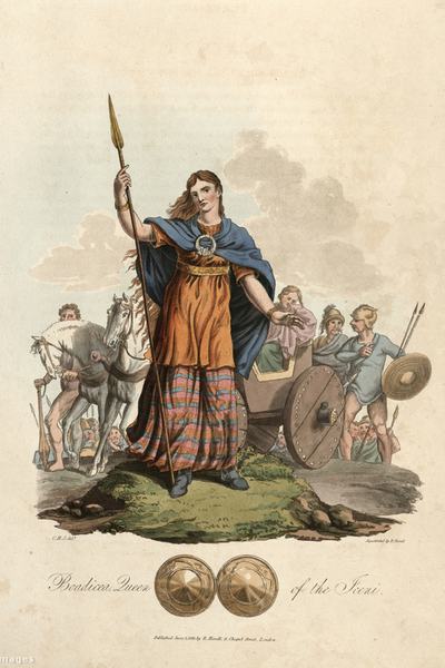 A Kr. u. 1. században élt Boudica (más írásmóddal Boudicca) a Délkelet-Britanniában élő brit kelta törzs, az incenusok királynője volt, akinek vezetésével a kelták nagyszabású felkelést robbantottak ki a területet megszálló római haderők ellen. Férje, Prastugatus király halála után a rómaiak átvették az uralmat az incén területek felett, az özvegy Boudica királynőt megkorbácsoltatták, lányait pedig brutálisan megerőszakolták. A sérelmet megtorlandó a királynő egyesítette az incenusokat és a szomszédos trinovant törzset, akikkel elfoglalt két római települést, és majdnem sikerült kiűzniük az ellenséget a brit szigetekről. A szerencse azonban végül a rómaiaknak kedvezett, akik Kr. u. 61-ben legyőzték Boudica seregeit. Tacitus elbeszélése szerint a harcias királynő inkább önkezével, méreggel vetett véget életének, mintsem fogságba kerüljön, egy másik történetíró, Cassius Dio szerint viszont a csatában szerzett sérüléseibe halt bele.