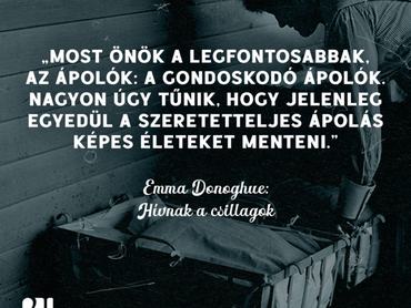Szerencsés véletlen vagy óriási pech, ha pont 2020 márciusára készül el a spanyolnátha idején játszódó történelmi regényed? Nem könnyű eldönteni. Egyrészt adja magát a koronavírus és a nagy influenzajárvány közti összehasonlítás lehetősége, ami különösen érdekessé, aktuálissá teheti a szöveget. Másrészt ott van, hogy ki akarna még a szabadidejében is egy halálos kórról olvasni a pandémia közepén? Ha emiatt hezitálnál Emma Donoghue új könyve kapcsán, meg tudunk nyugtatni: a Hívnak a csillagok a fertőző betegség elleni elszánt küzdelem mellett más fontos témákat is felvonultat, nem is keveset – nagy kár lenne lemaradni róluk.