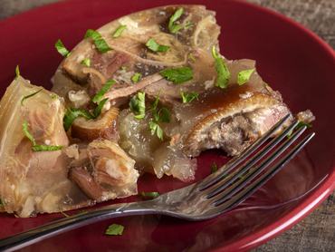 Szomszédainknál népszerű karácsonyi előételnek számít ez a disznó- és marhahúsból készült, zöldségekkel és fokhagymával ízesített kocsonya.