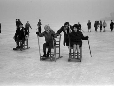 Januári Fortepan – Fakutyázás a balatonfüredi hajóállomásnál az 1960-as évek végén.