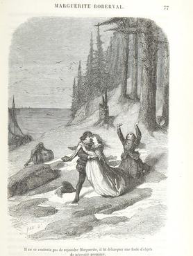 A hadnagy magával hozta az útra egy fiatal, hajadon nőrokonát, Marguarite-et, aki még odahaza titokban beleszeretett egy férfiba, és mivel nem akart elválni kedvesétől, felcsempészte őt a fedélzetre – a szűkös, zsúfolt hajóközben persze nem sokáig maradhatott észrevétlen a potyautas. A szigorú kálvinista elveket valló Robervalt megdöbbentette rokona erkölcstelensége, vagyis a tény, hogy Marguarite hajadonként testi viszonyba bonyolódott egy férfival (a történet egyes változatai szerint erre a lány gömbölyödő hasából jött rá), és úgy döntött, száműzi a gyarmatosítók közösségéből a botrányos párt.